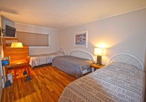 Two singles in closets are rollaway cots.