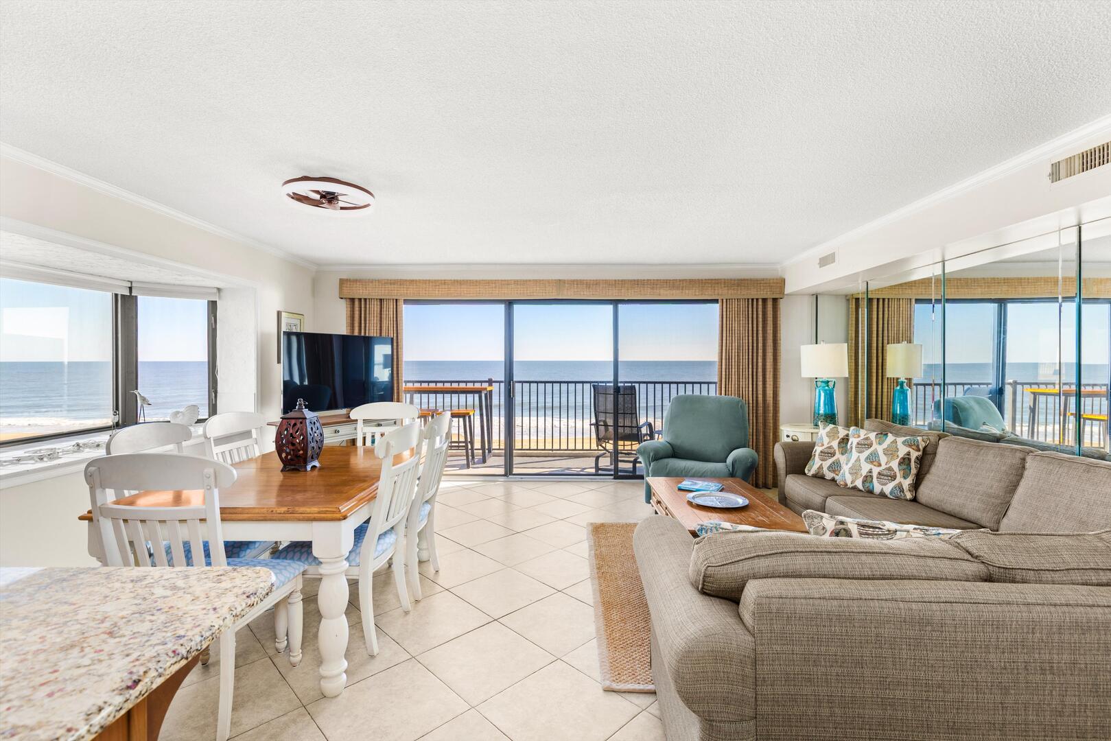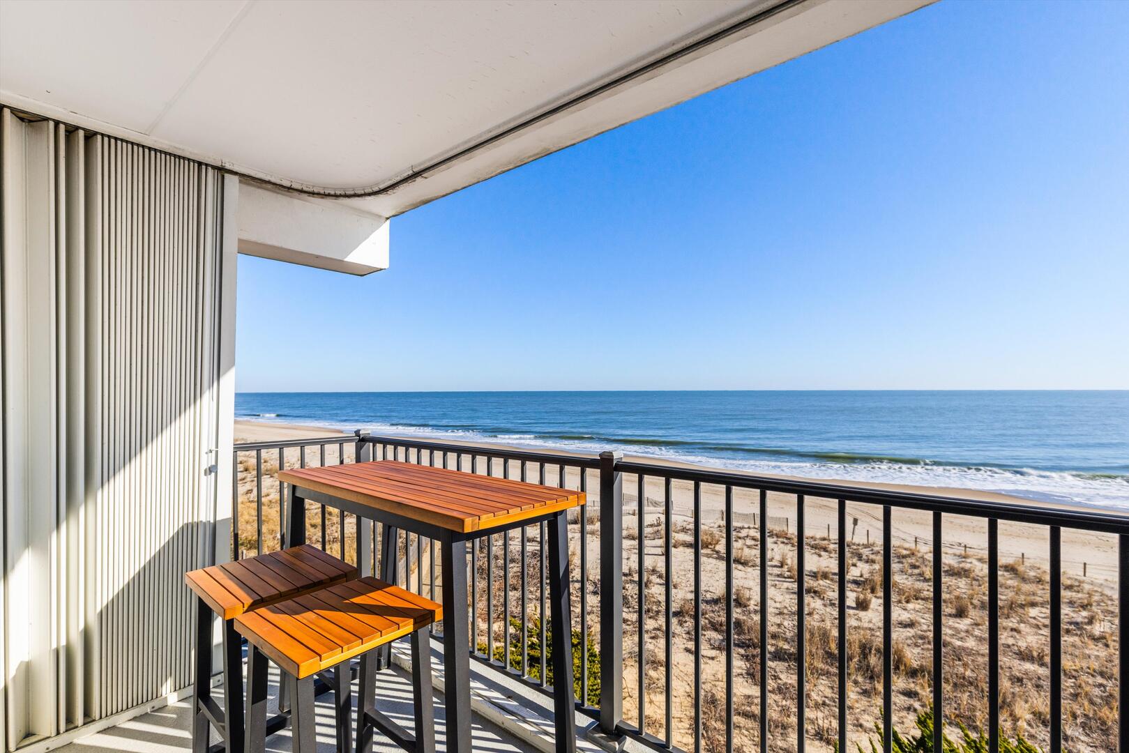 Experience true oceanfront living in this stunning two bedroom, two bath end unit, located in a quiet, low-density mid-town area. Offering year-round availability, this rare find is perfect for a relaxing getaway. Enjoy sweeping panoramic ocean views from every room—including the master bathroom—and an abundance of natural light through the extra end-unit windows. Wake up each morning to the soothing sound of the surf and take in breathtaking sunrises right from your bed. The unit is fully equipped with modern amenities to make your stay comfortable and convenient, including a full kitchen, central heat and air, free wireless internet, and elevator access for easy access to all floors. With off-street parking for two cars, you’ll never have to worry about finding a spot. Plus, you're just a short walk from fantastic dining options, so you can easily explore the best local flavors. This is coastal living at its finest, combining relaxation, comfort, and convenience.