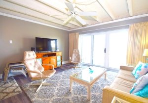 This one bedroom, one bath unit is well situated in a convenient mid-town location within walking distance of dining and shopping. The stylish, masonry building features an elevated pool, elevator, and off street parking under the building (height restrictions apply). The unit features: central air, full kitchen, washer and dryer and free WIFI. Enjoy views of the ocean and bay from the northern exposure balcony.