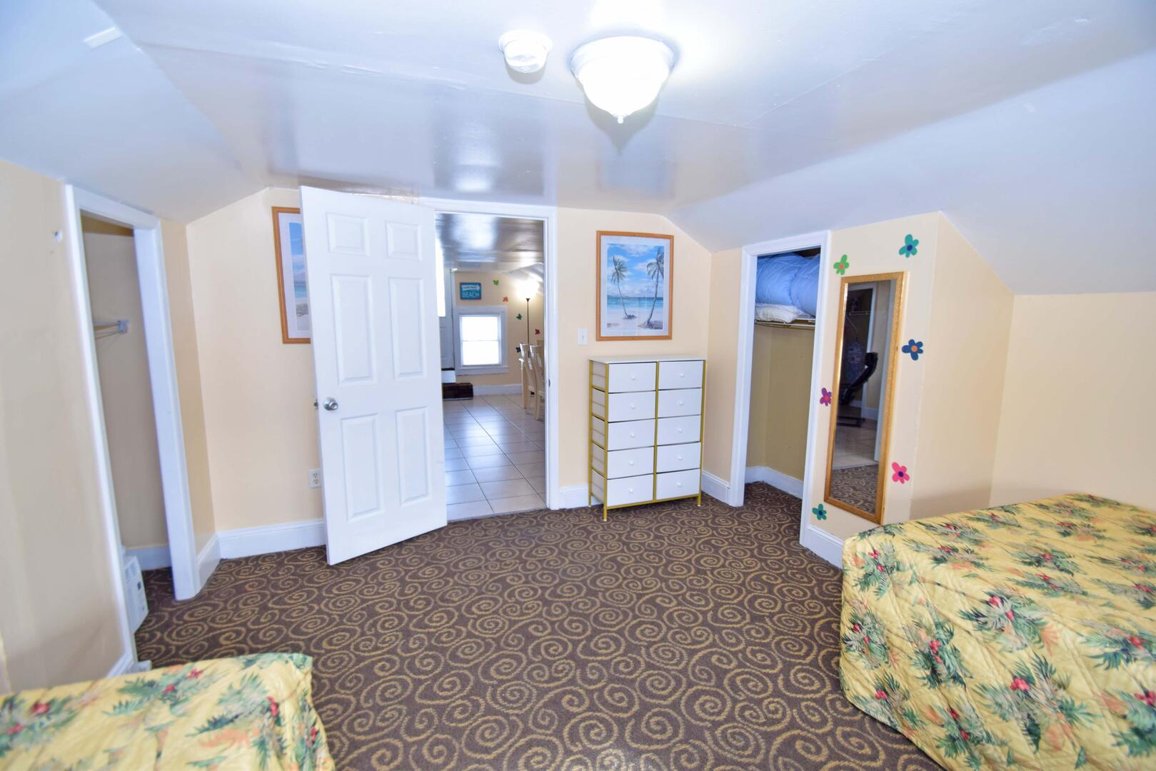 This spacious rental, just a short walk from the beach and boardwalk, offers three bedrooms and one full bath. The living room provides a comfortable space to relax after a day of exploring. Inside, you'll find multiple air conditioning units, a fully equipped kitchen, and free cable and internet. Enjoy the outdoor pool on warm days, and take advantage of off-street parking for easy access. A perfect spot for a comfortable, hassle-free summer getaway.