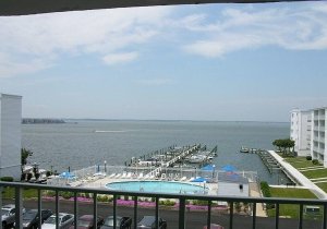 Adjacent to Convention Hall, this lovely bayside condominium project features 4 buildings, each with one or more elevators, access to the outdoor pool, off street parking and boat docks. Boat docks are available by on-site reservation only on a first come, first serve basis after you check-in. Each unit has two bedrooms, two baths, living room and dining area with sliding doors opening to a large balcony. Features include fully equipped kitchen, washer, dryer and central air. Some units are NON-SMOKING. Unit 128C is within walking distance to the beach across Coastal Highway, miniature golf, restaurants and has a Western Exposure with a Bay view overlooking the Pool.